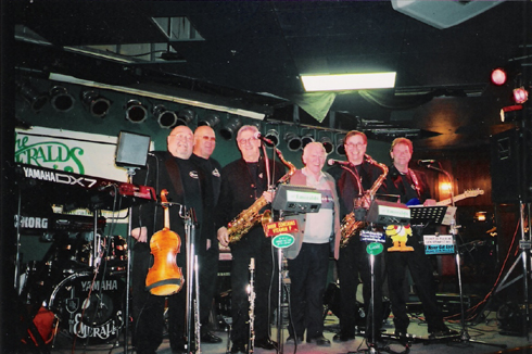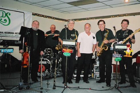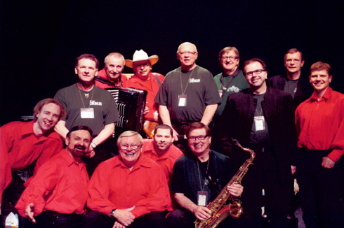 The Emeralds pose with Walter Ostanek, Brian Sklar and the Western Senators