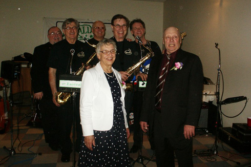 The Emeralds posing with Ed and Louise Muller, celebrating thier 50th wedding anniversary.